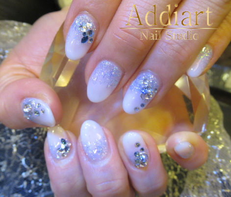 キラキラ冬ネイル☆ ブルー系のラメの逆グラデーションが可愛いデザイン^^ 【ジェル ¥11000+税】