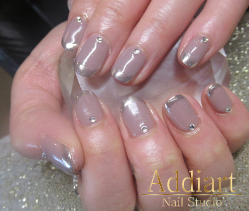 グレージュカラーにミラーフレンチでおしゃれネイル☆ 【ジェル ¥9500+税】