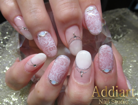 エアブラシのレースでふんわり上品なネイルに! 【ジェル ¥10900+税】