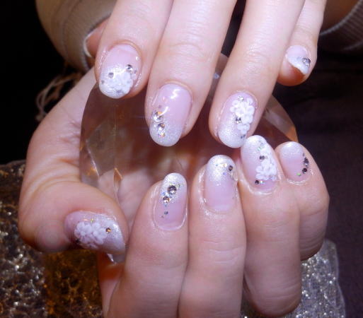 埋め込みのお花がかわいいデザイン☆ 【ジェル¥11350+税】