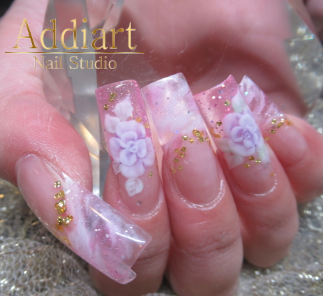 アクリルで長さだししてお花を埋め込んだデザスカです。 【デザイン埋め込みアート¥800〜/本】
