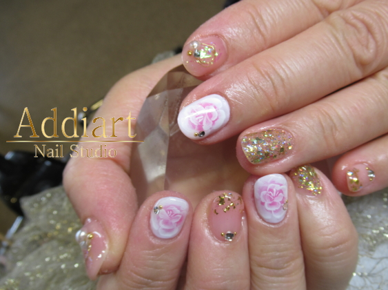 大き目のトールペイントフラワーが可愛いデザインです☆ 【ジェル ¥12150+税】