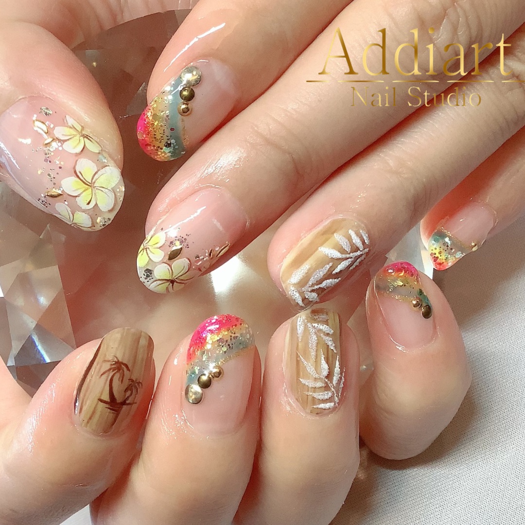 ハワイをイメージした夏ネイル☆ 【ジェル ¥12870(税込)】