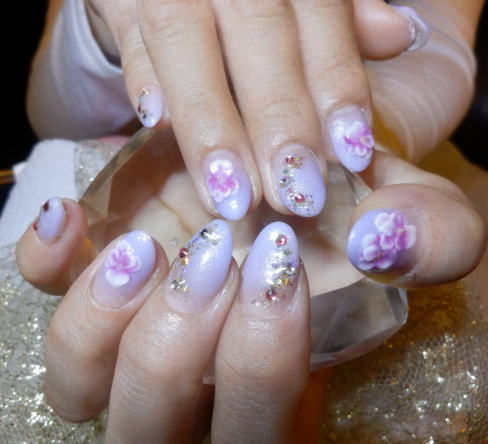 パンジーのエンボスにストーンで可愛いデザイン☆ 【ジェル¥11000+税】