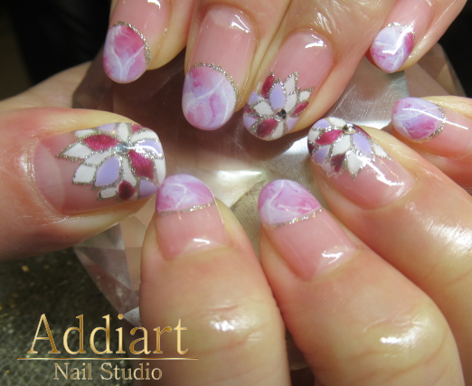 カラーをアレンジすれば何通りも楽しめるフラワーデザイン! リピートオーダーも多い人気ネイルです☆ 【ジェル ¥10320+税】
