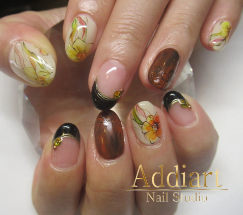 レザー調のデザインが高級感! Addiartオリジナルデザイン☆ 【ジェル ¥12600+税】