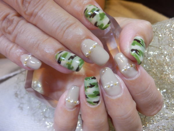 迷彩とパールでカッコ可愛いデザイン♪ 【ジェル¥10450税】