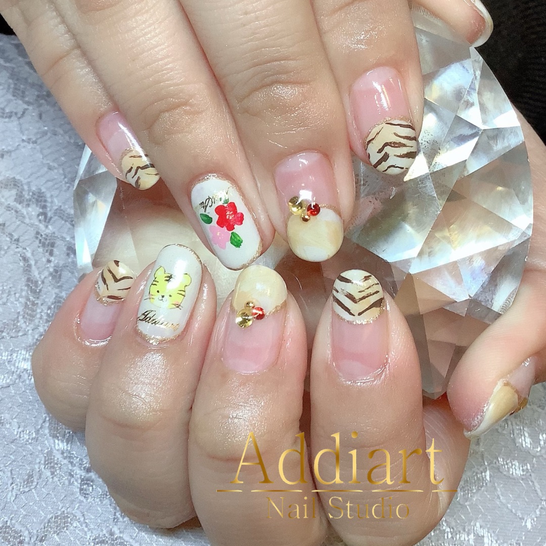 手描きトラが可愛い干支ネイル☆ 【ジェル ¥12166(税込)】